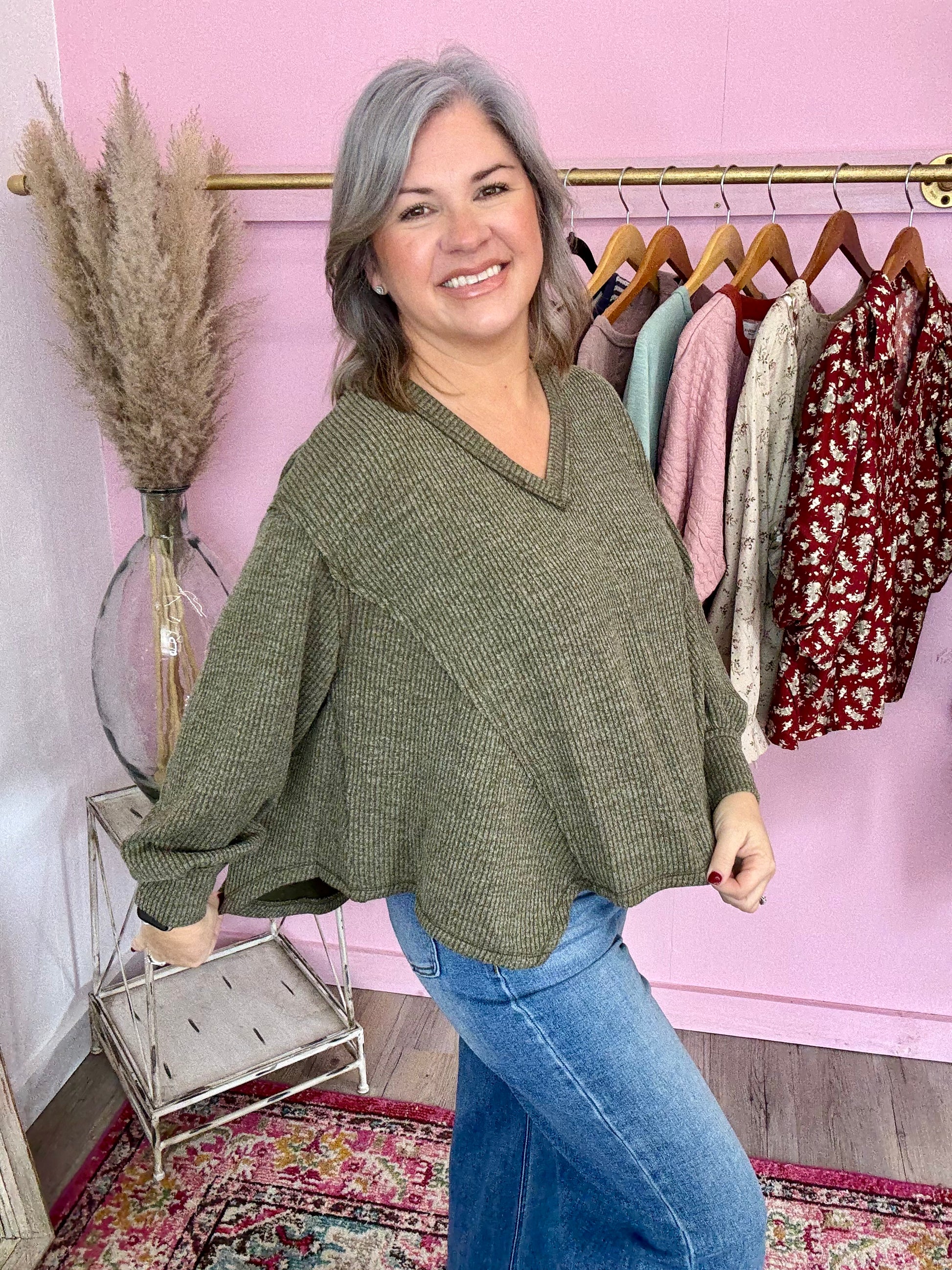 V-Neck Waffle Top